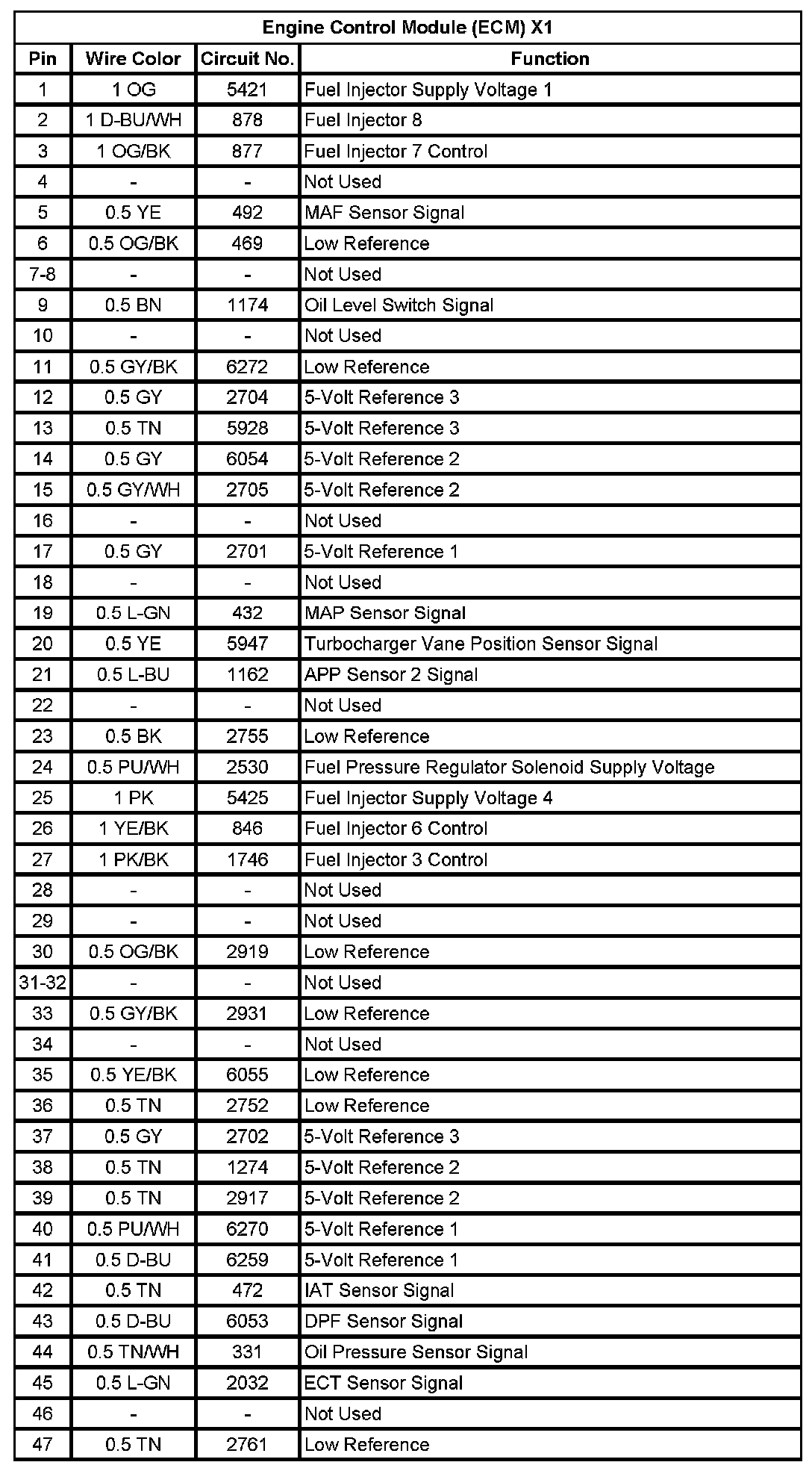 Engine Control Module (ECM) X1 (Pin 1 To 47):