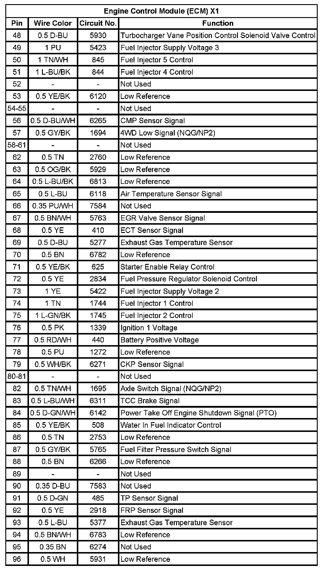 Engine Control Module (ECM) X1 (Pin 48 To 96):