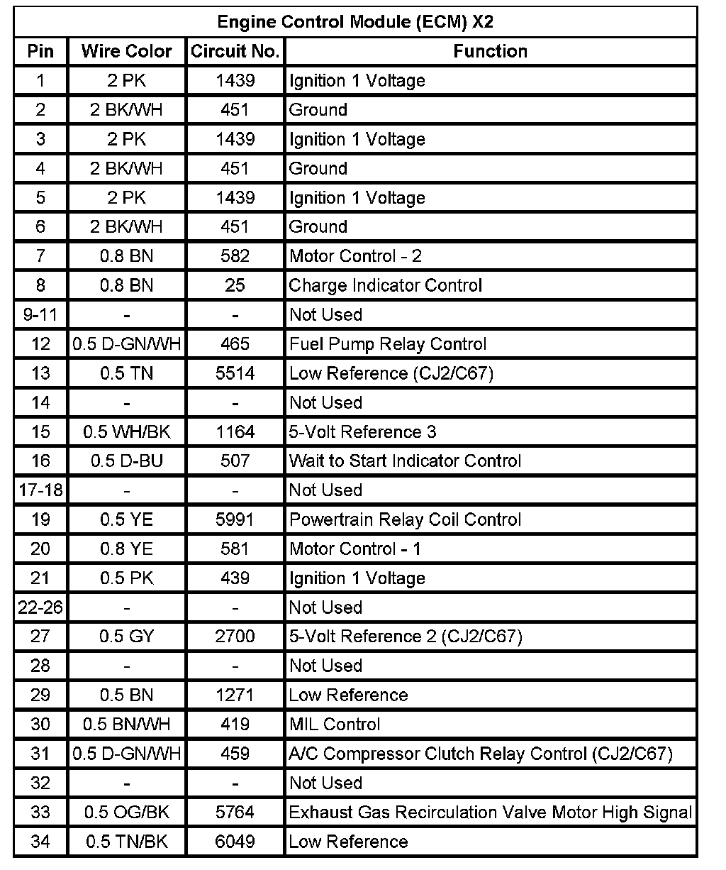 Engine Control Module (ECM) X2 (Pin 1 To 34):