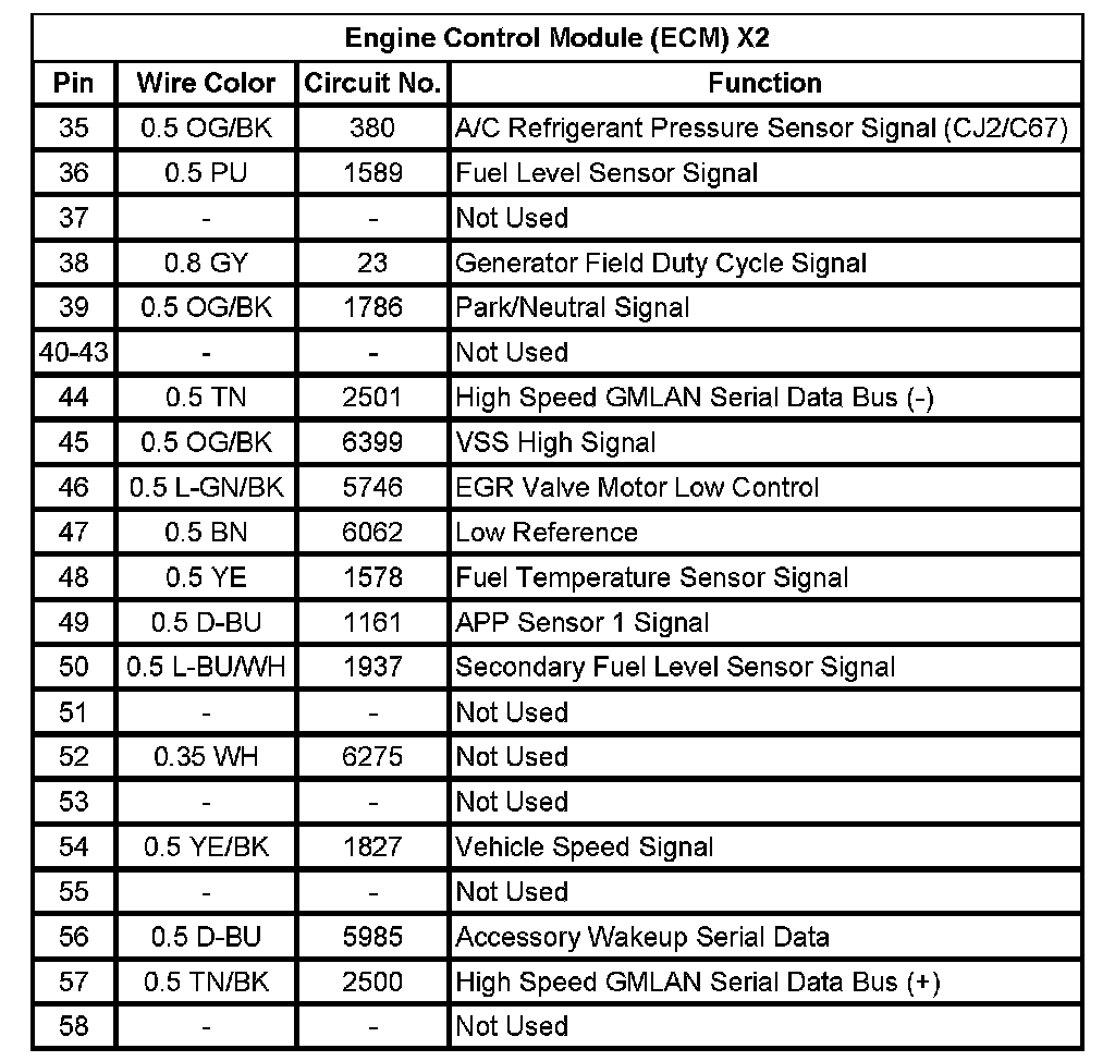 Engine Control Module (ECM) X2 (Pin 35 To 58):