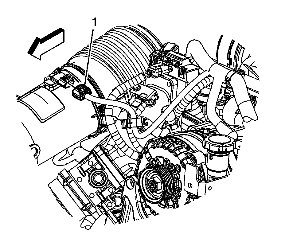 1. Disconnect the engine wiring harness electrical connector (1) from the mass air flow (MAF)/intake air temperature (IAT) sensor.