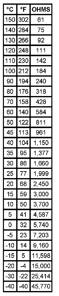 Temperature Versus Resistance (Fuel Temperature Sensor)