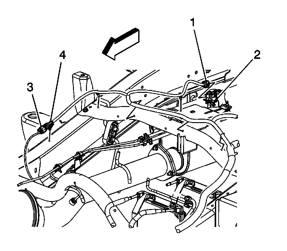 2. Connect the exhaust temperature sensor (3) electrical connector to the chassis wiring harness electrical connector (4).