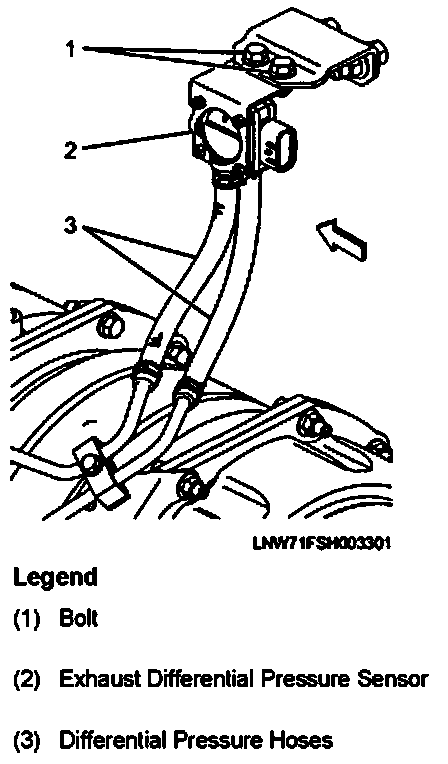 2. Install the exhaust differential pressure hoses (3).