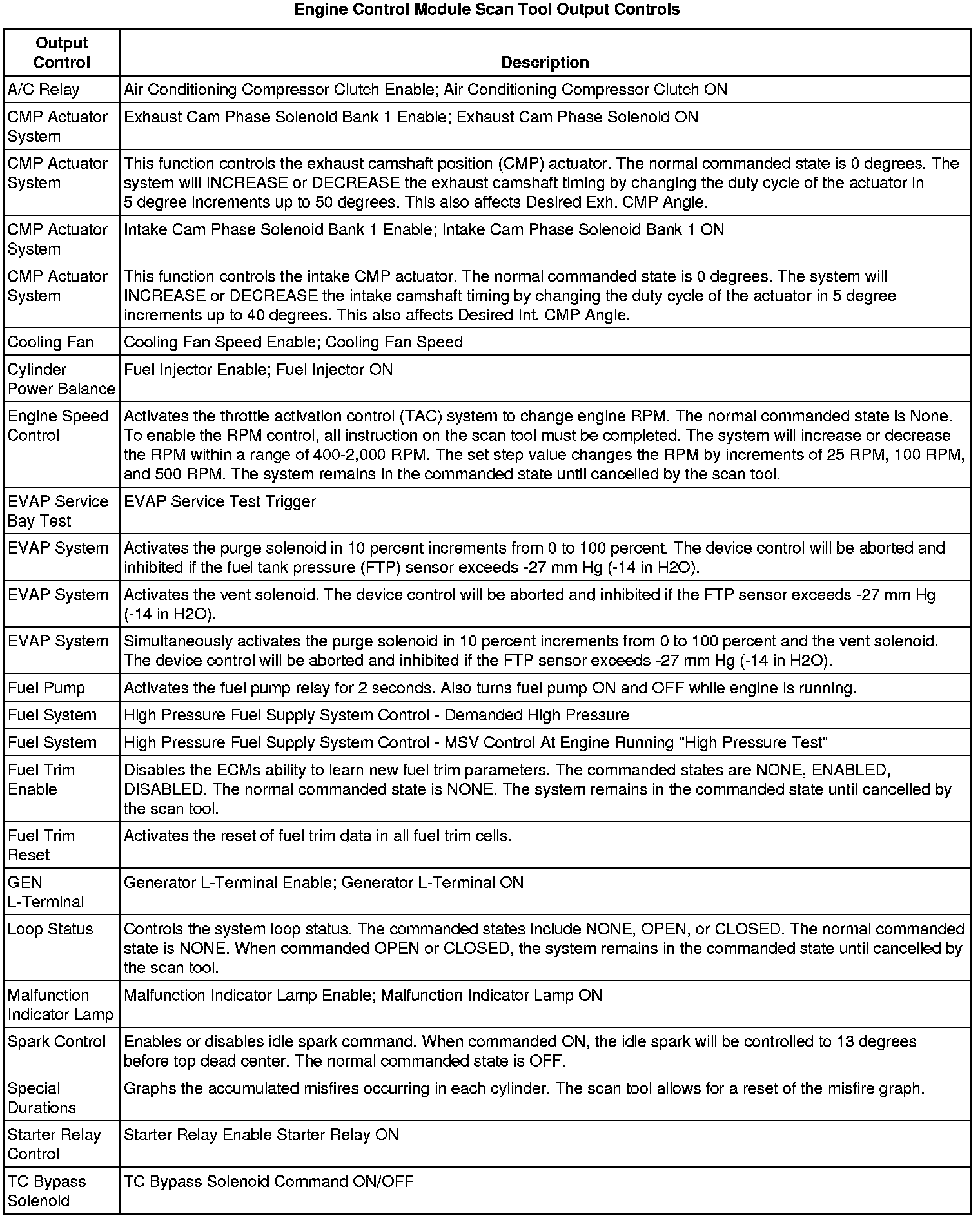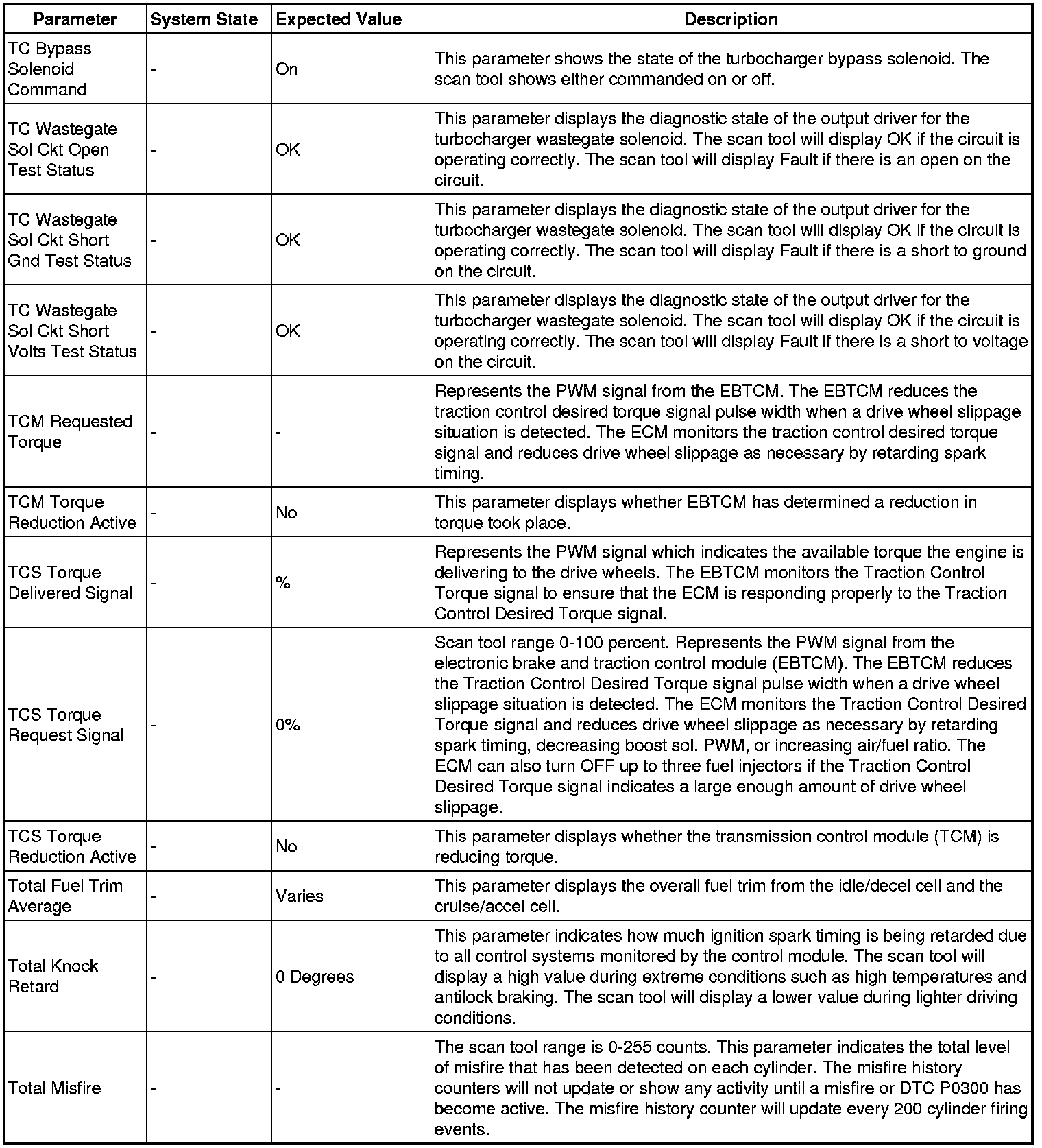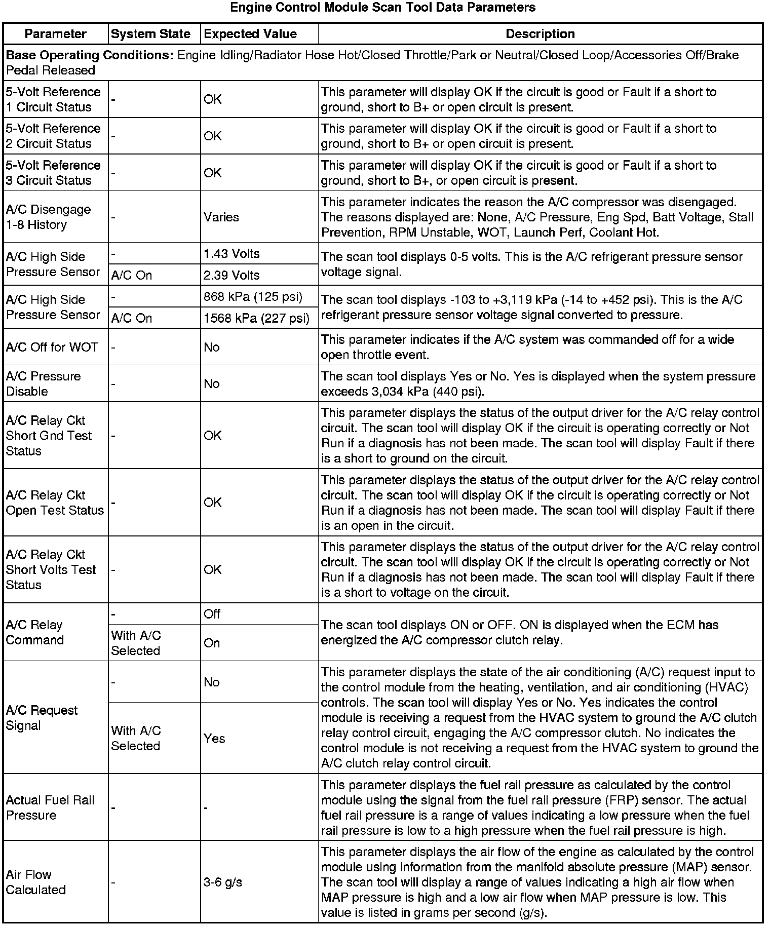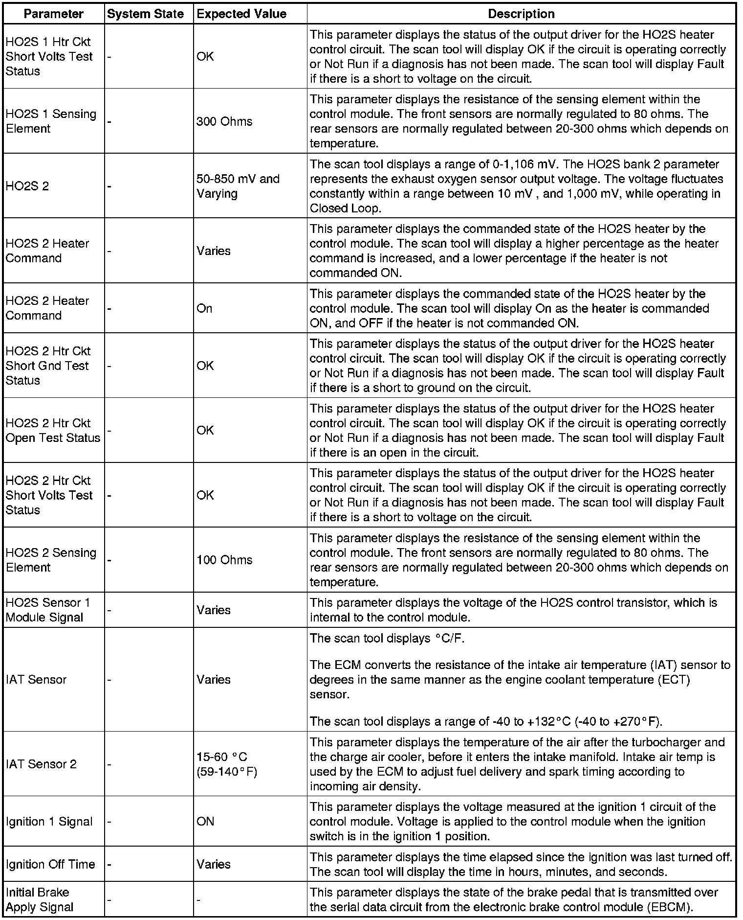 The Engine Control Module Scan Tool Data List contains all engine-related parameters that are available on the scan tool. The list is arranged in alphabetical order. A given parameter may appear in any one of the data lists, and in some cases may appear more than once, or in more than one data list in order to group certain related parameters together.