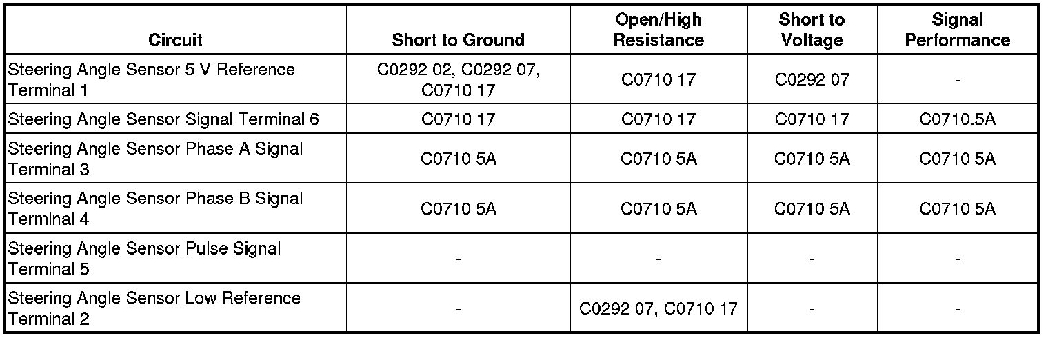 * During high humidity conditions, condensation from the HVAC system may cause this DTC. If this DTC is reoccurring or set as a history code, inspect the steering angle sensor connector for water intrusion or corrosion.