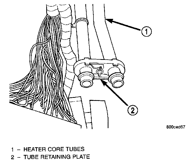 Install screws to retain heater core in housing.Replace heater core tube inlet O-rings. Tighten heater core tube retaining plate to 3 ± 1 Nm (27 ± 9 in. lbs.) torque.