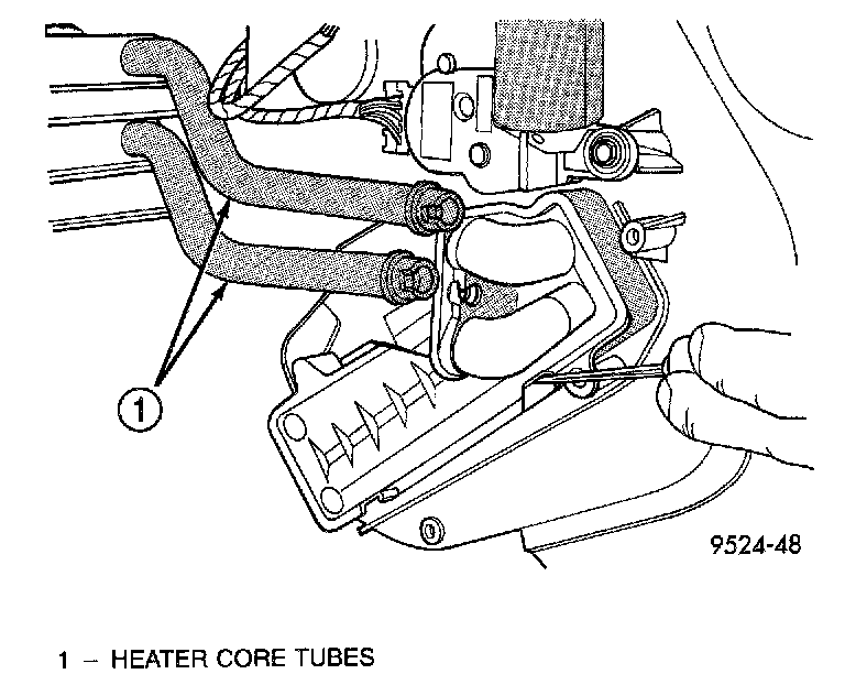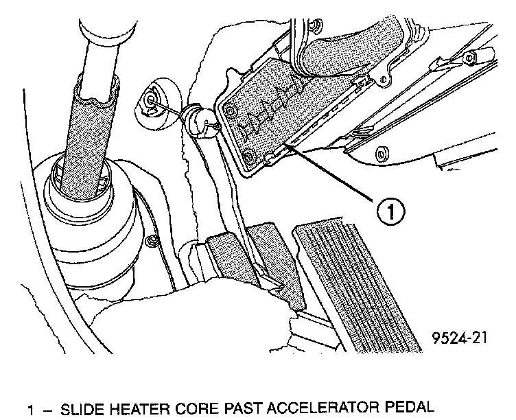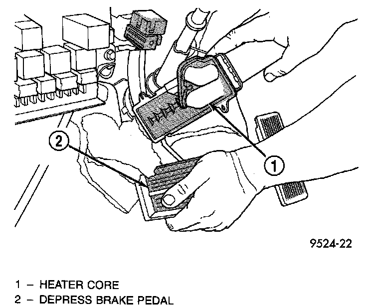 10. Depress brake pedal and remove heater core from HVAC housing.