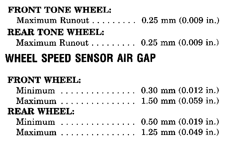 Antilock Brake System Component Specifications