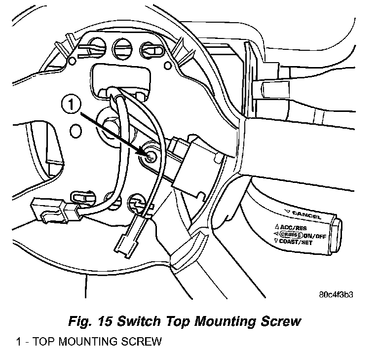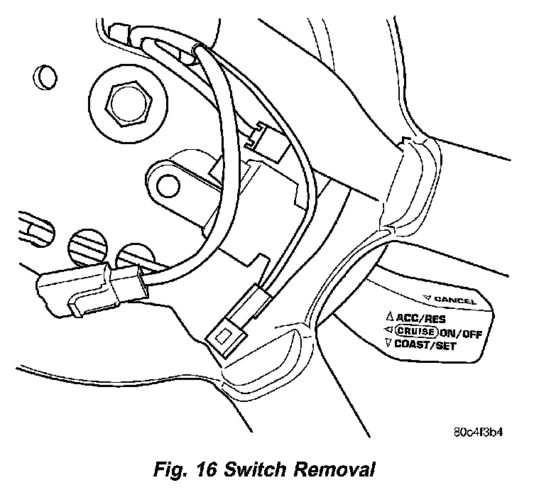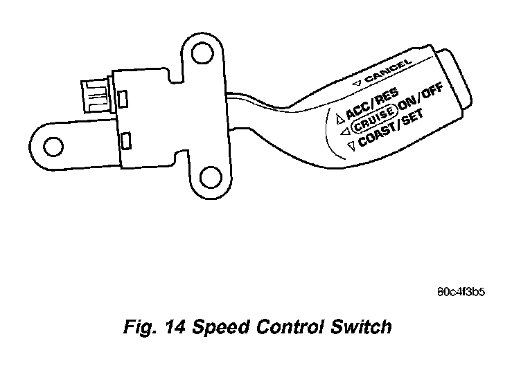The speed control switch is mounted in the steering wheel and wired through the clockspring device under the airbag module.