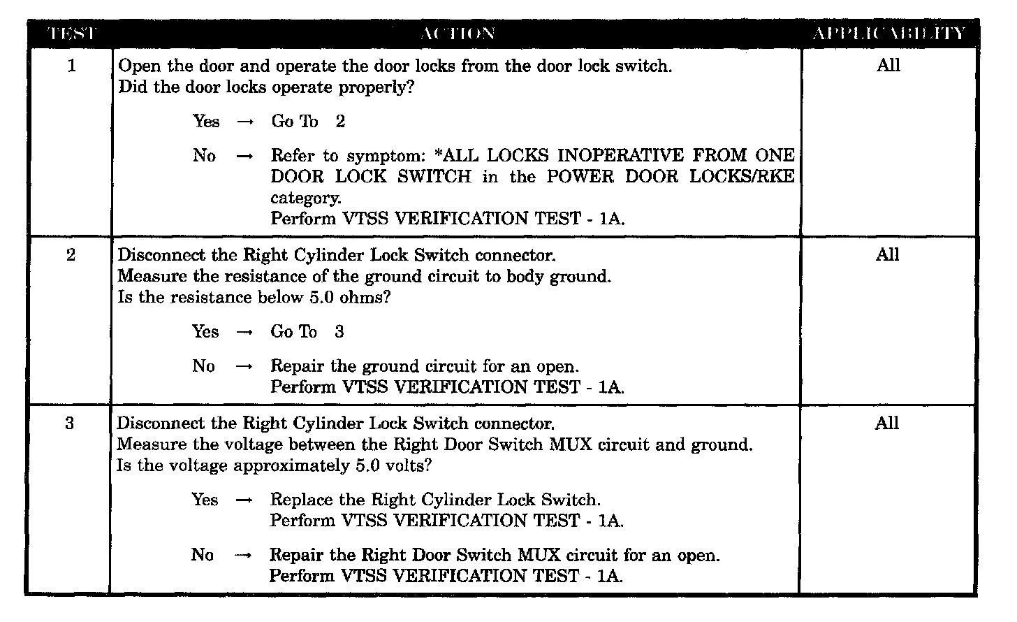 VTSS FAILS TO ARM FROM RIGHT DOOR CYLINDER LOCK SWITCH (EXPORT ONLY)