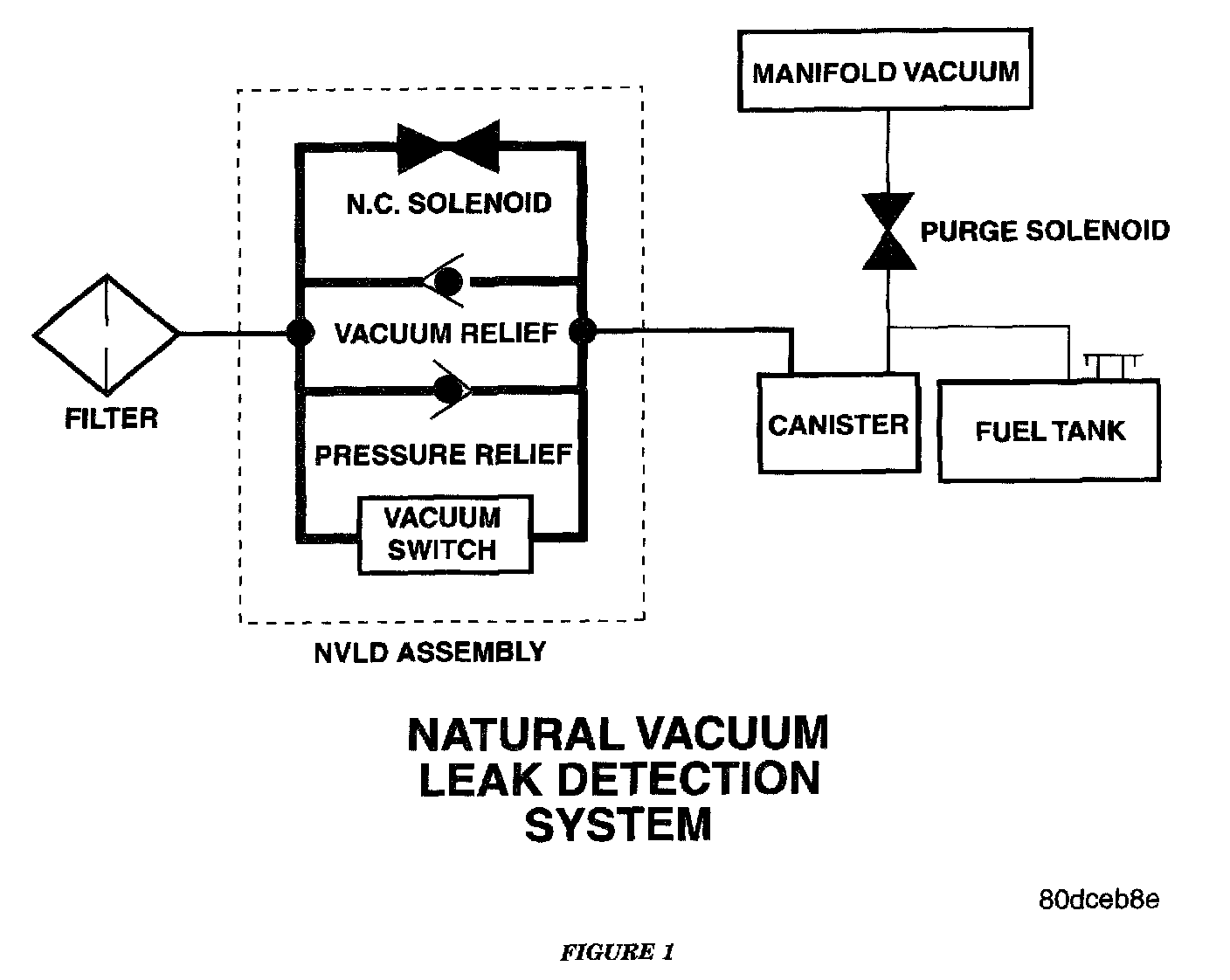 The Natural Vacuum Leak Detection (NVLD) system is the next generation evaporative leak detection system that will first be used on vehicles equipped with the Powertrain Control Module (PCM) or Next Generation Controller (NGC) starting in 2002 M.Y This new system replaces the leak detection pump as the method of evaporative system leak detection. The current CARB requirement is to detect a leak equivalent to a 0.020 inch (0.5 mm) hole. This system has the capability to detect holes of this size very dependably.