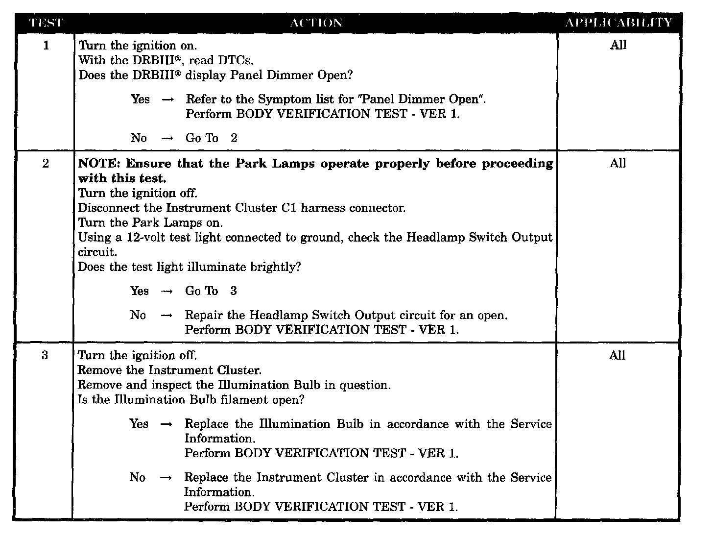 INSTRUMENT CLUSTER DIMMING INOPERATIVE