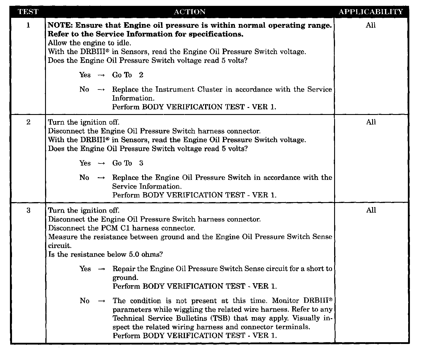 Engine oil pressure switch sense circuit short to ground