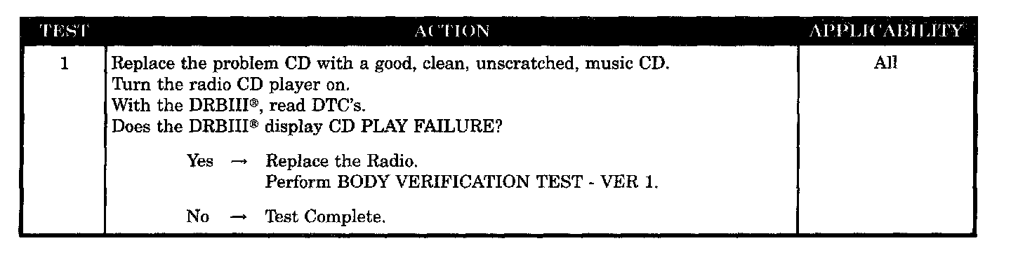 This symptom is diagnosed using the test CASSETTE PLAYER INOP.