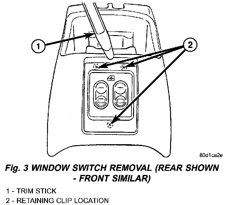 2. Using a trim stick (special tool #C-4755) or equivalent, gently pry at the top of the switch.