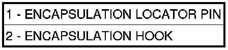4. Position windshield into opening by installing encapsulation locator pin (1) then loading the encapsulation hooks (2) onto the panel hooks.