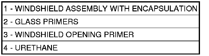 11. Apply a bead of urethane (4) on windshield glass as indicated.