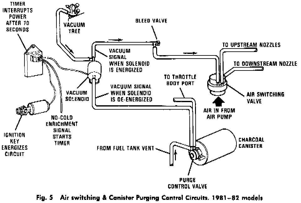 The air switching system, Fig. 5, is used on 1981 vehicles with Electronic Fuel Injection. Its purpose is basically the same as that for other vehicles with an [1][2]air switching valve. However, the controls and operation are slightly different.
