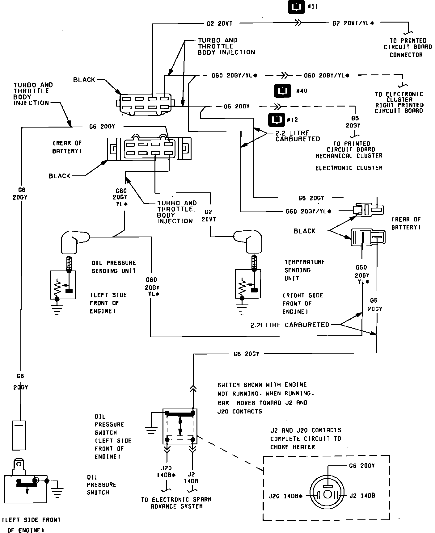 Fig. 84 Oil Pressure & Temperature Warning System Wiring Circuit. 1984 4-135/2.2L: