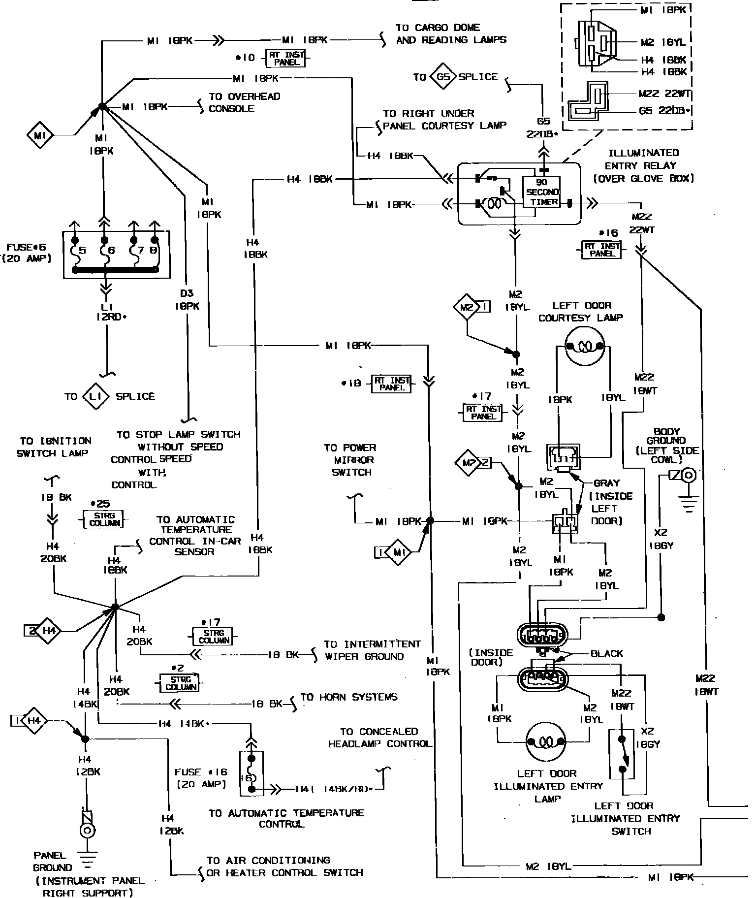 Fig. 27 Door Courtesy Lamps & Illuminated Entry Wiring Circuit (Part 1 of 2):
