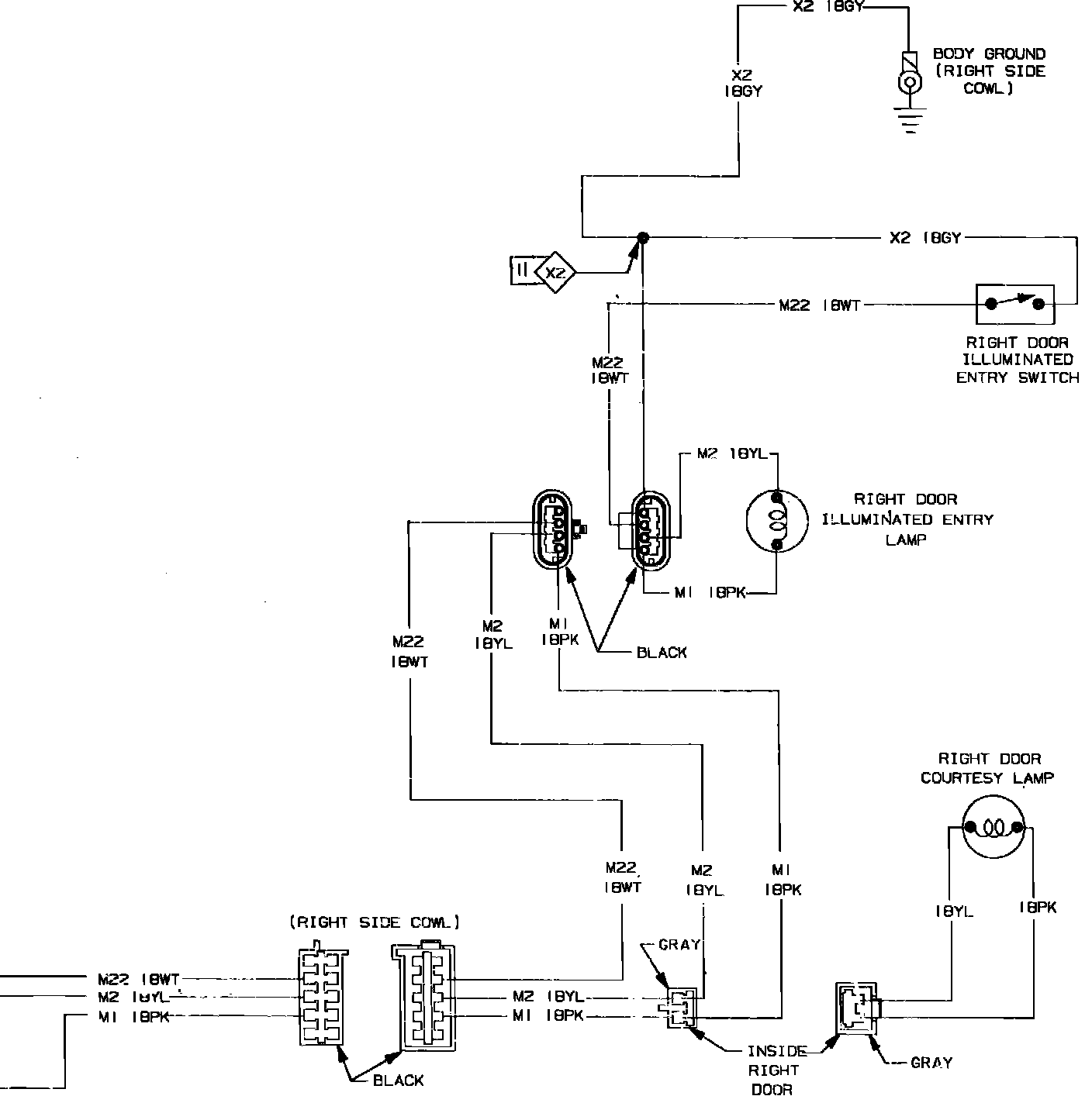 Fig. 27 Door Courtesy Lamps & Illuminated Entry Wiring Circuit (Part 2 of 2):