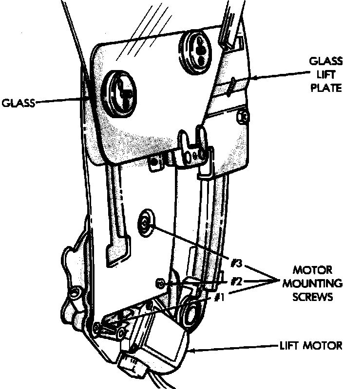 [1] Extreme caution should be used when working with any regulator that has a counterbalance spring. If the window is not secured in the "full up" position, removal of the power window motor will allow the counterbalance spring to move the sector gear very quickly. This could result in either personal injury or damage to the vehicle.