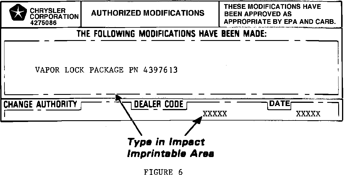 2. Type in Authorized Modification Label, PN 4275086, as shown in Figure 6 and attached near VECI label.