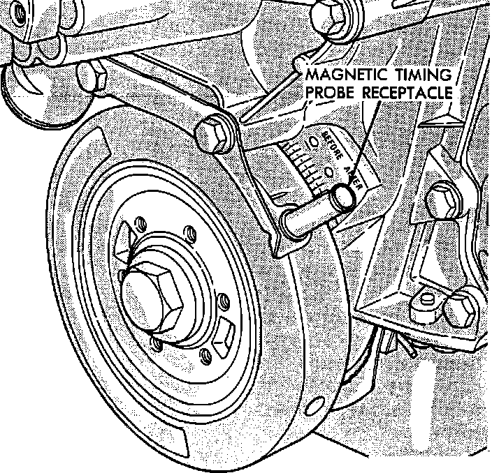 NOTE: The magnetic timing probe socket is located 10° after top dead center. Do not use this socket to check or adjust timing with a standard timing light.