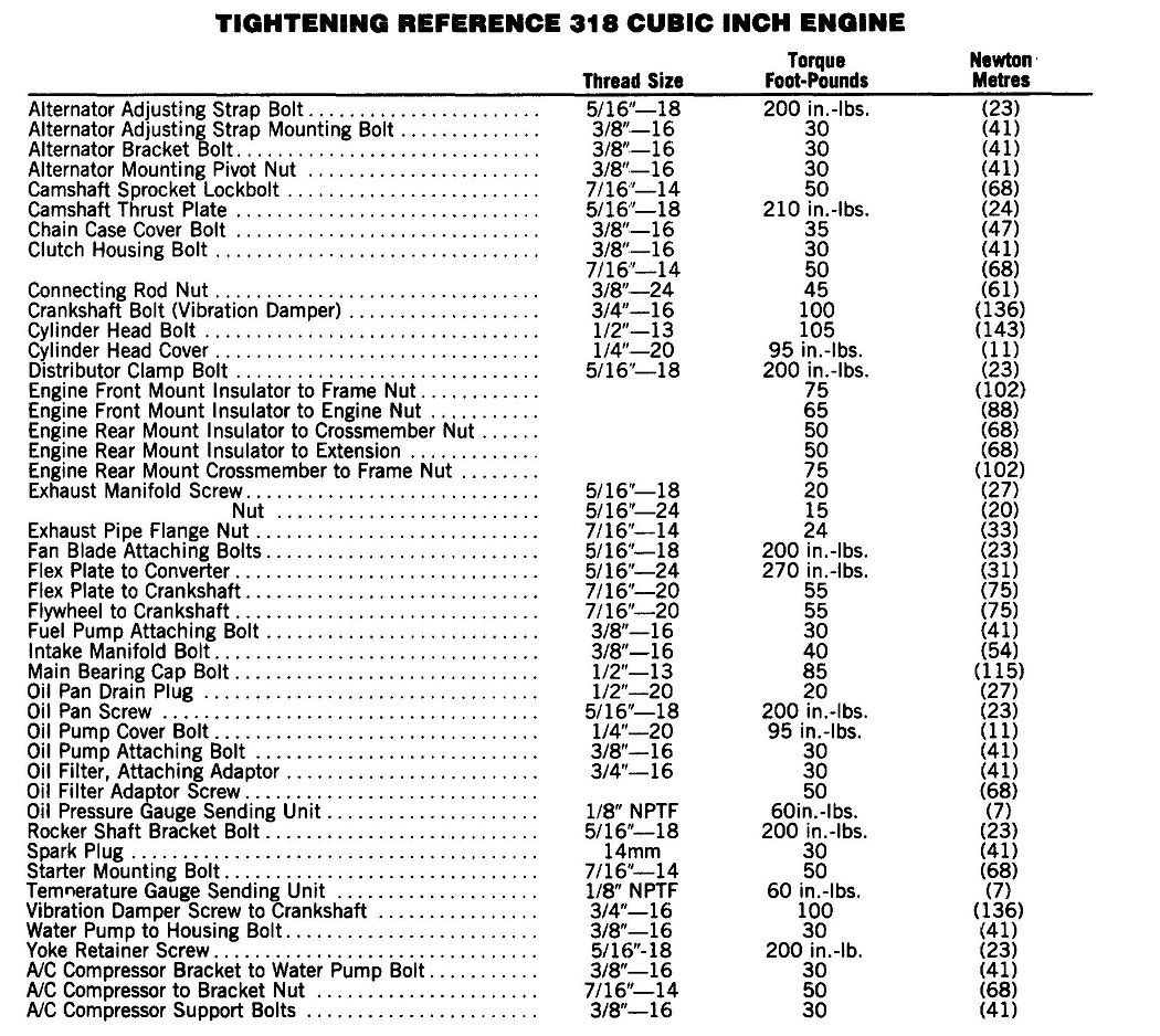 Fifth Avenue V8-318 5.2L VIN P 2-bbl