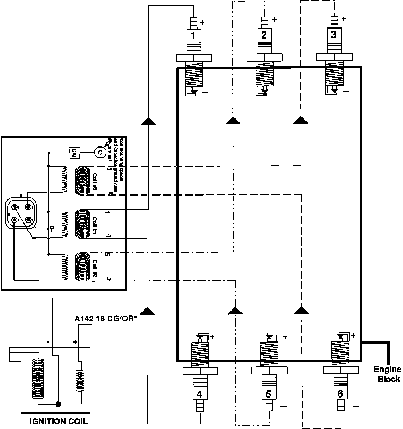 ^ When the primary circuit is grounded, current flowing in coil primary windings generates an electromagnetic field.