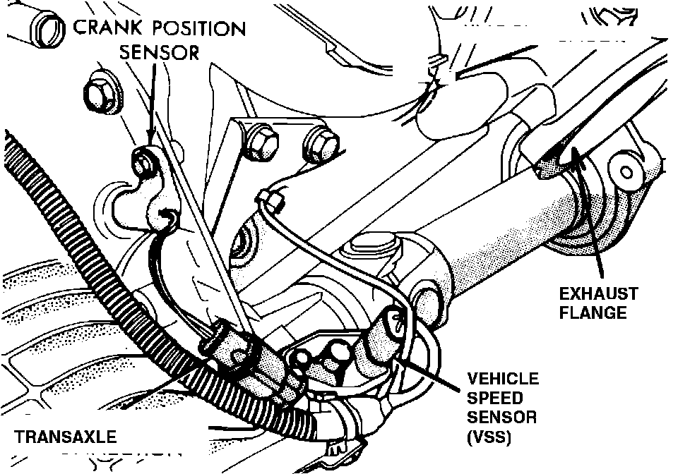 The Crankshaft Position Sensor is mounted on the transaxle bellhousing.