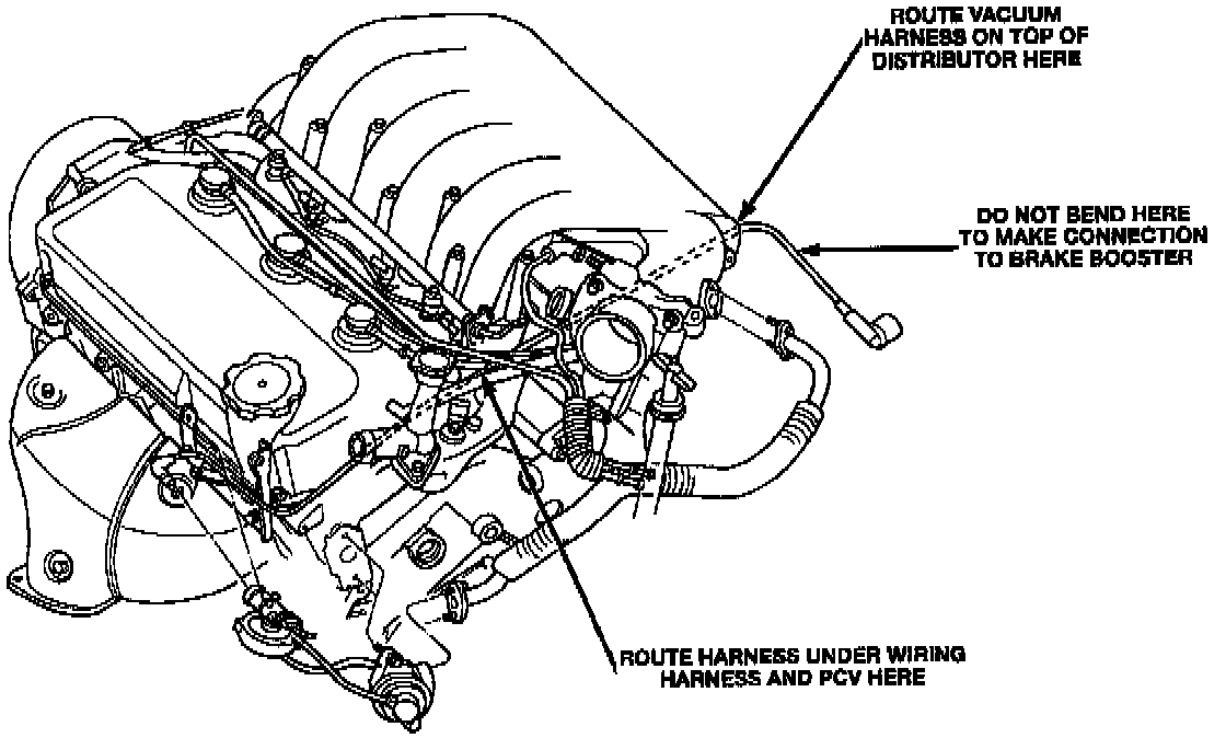 6. Connect both ends of new harness to EGR solenoid and brake booster.