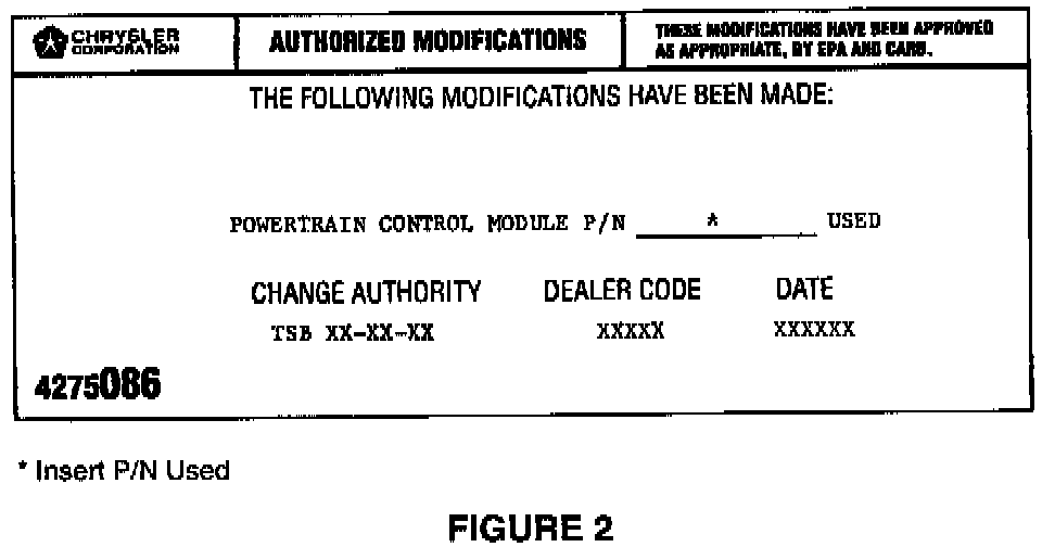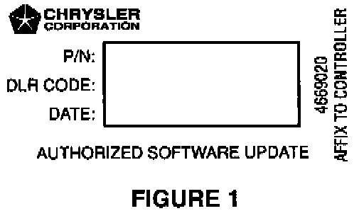 9. Type the necessary information on the "Authorized Software Update Label" p/n 04669020 (Figure 1). Attach the label to the PCM and cover the label with the clear plastic overlay.