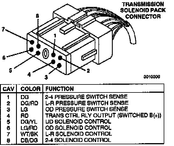 A604 (41TE) 4 Speed Transaxle Solenoid Pack Connector:
