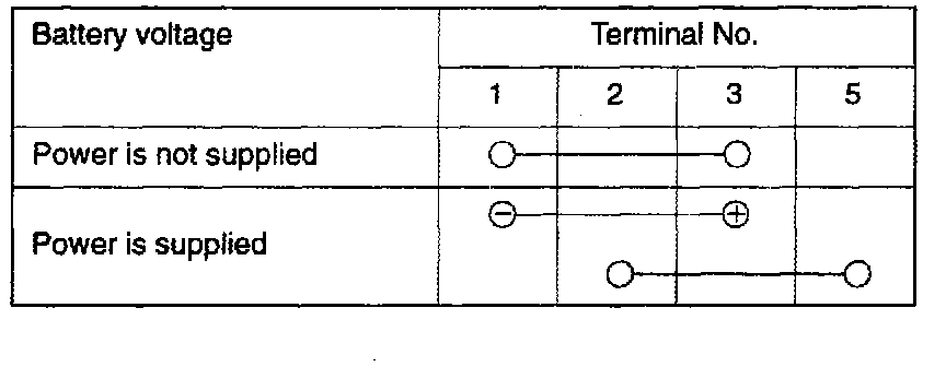 as shown in image and verify relay continuity is as described in chart.