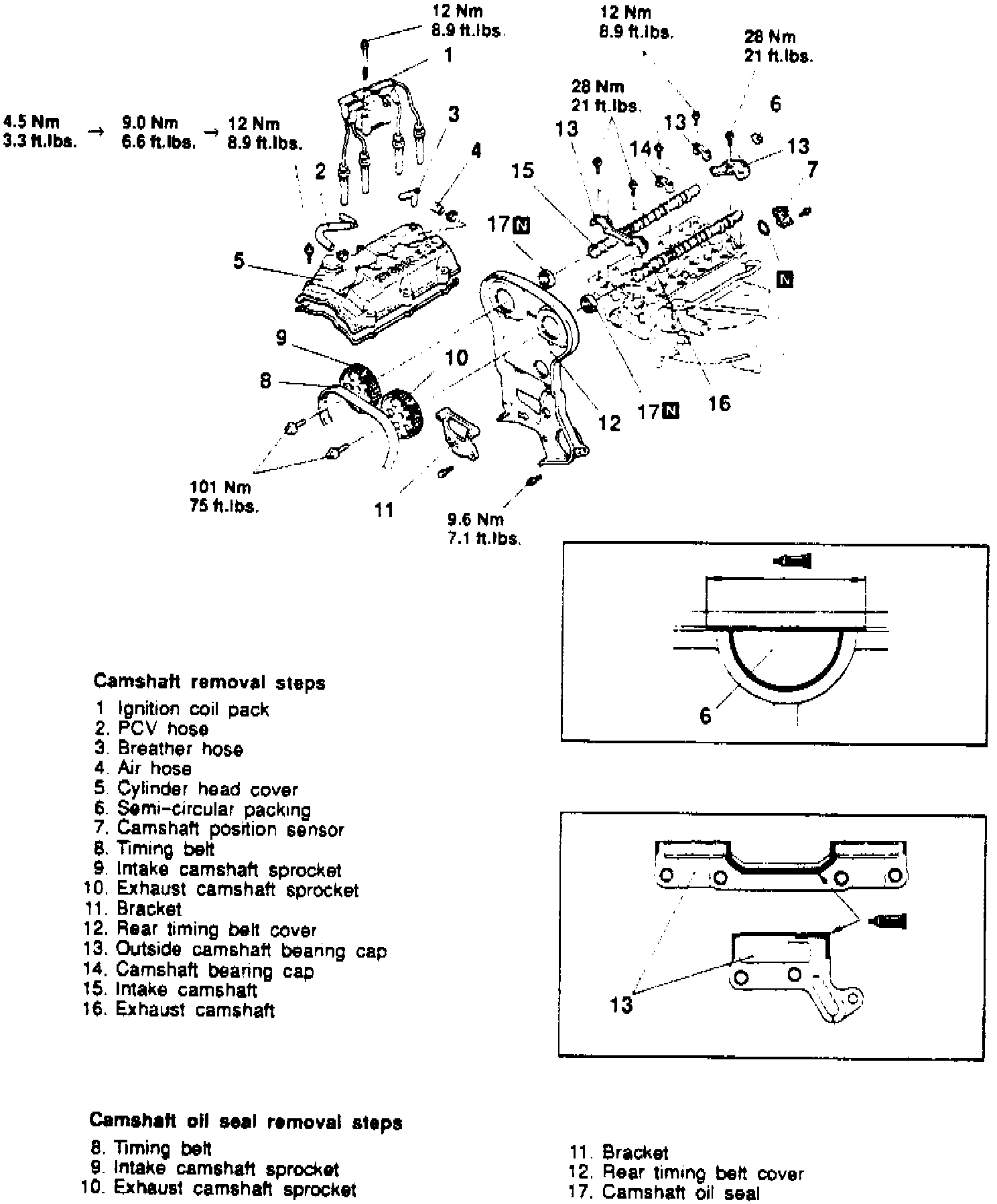 2. Mark and identify intake camshaft and exhaust camshaft before removal as they are not interchangeable.