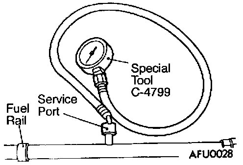 3. Connect Fuel Pressure Gauge C-4799 to fuel rail service valve.