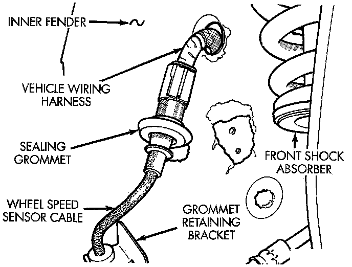 PROCEDURECAUTION: Proper installation of wheel speed sensor cables is critical to continued system operation. Be sure that cables are installed in retainers. Failure to install cables in retainers as in this section may result in contact with moving parts and/or over extension of cable, resulting in an open circuit.