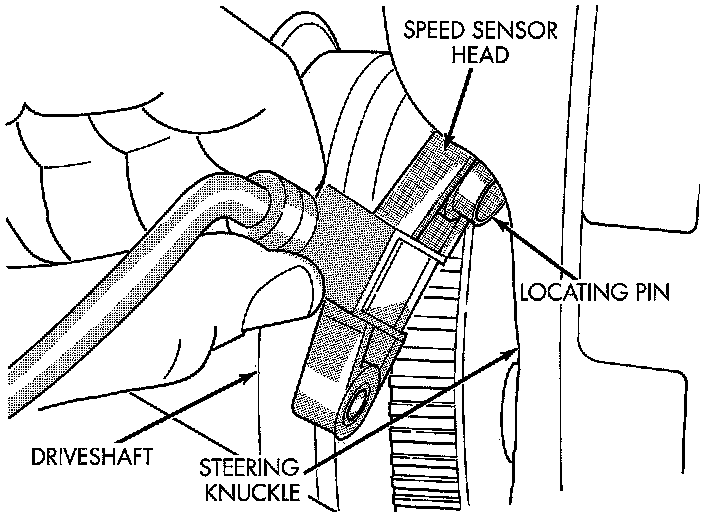 4. Install speed sensor head on steering knuckle. When installing speed sensor head on steering knuckle, apply a small amount of grease on speed sensor locating pinch Use Mopar, Multi-Purpose Grease or an equivalent on speed sensor head locating pinch Install the speed sensor head attaching screw and tighten to a torque of 6 Nm (55 inch lbs.).