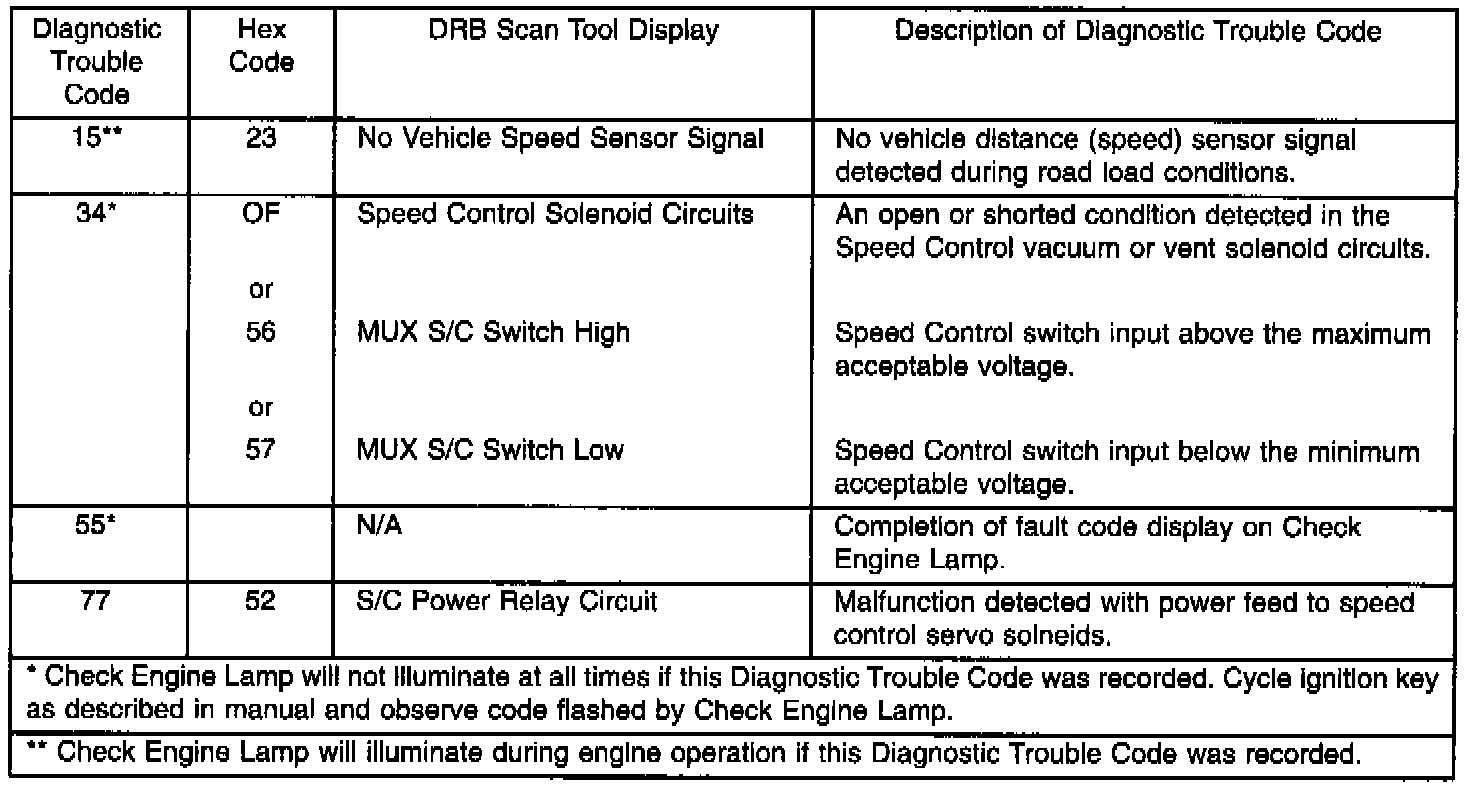 Speed Control Diagnostic Trouble Codes: