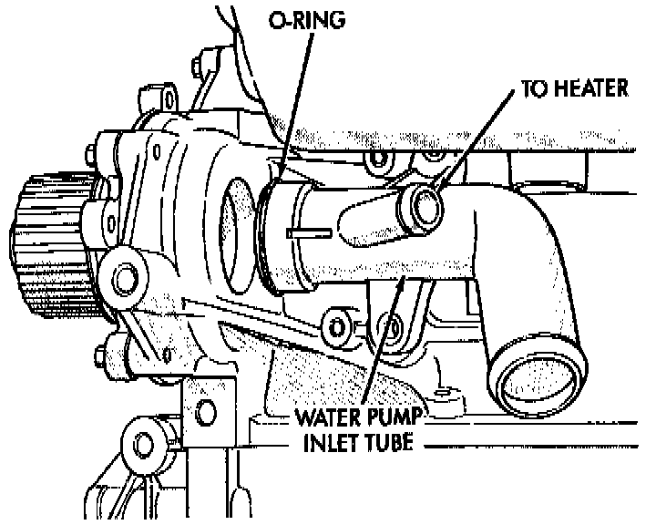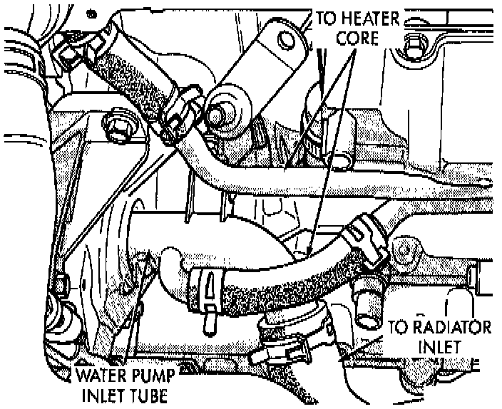 4. Connect lower radiator hose and heater hose to inlet tube.
