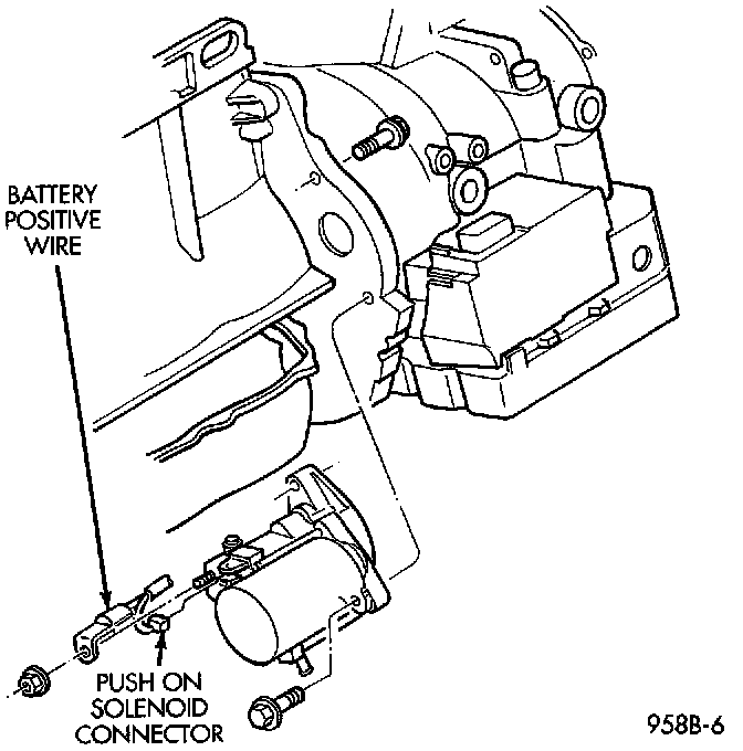 7. Connect battery positive cable to solenoid post.