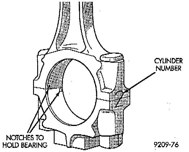 5. Rotate crankshaft so that the connecting rod journal is on the center of the cylinder bore. Insert rod and piston into cylinder bore and guide rod over the crankshaft journal.