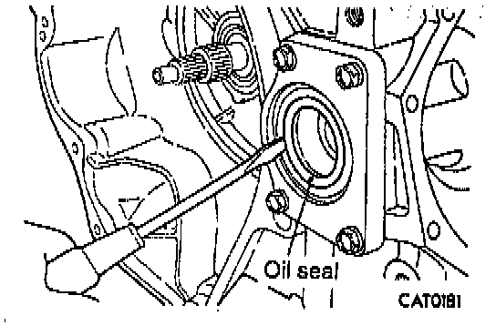 16. Remove oil seal from differential bearing retainer with a small chisel and hammer.
