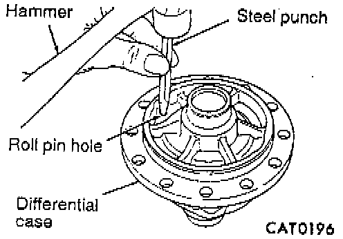 13. Remove pinion shaft roll pin by tapping out with a hammer and steel punch.