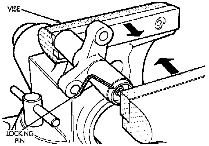 CAUTION: Index the tensioner in the vise the same way it is installed on the engine. This is to ensure proper pin orientation when tensioner is installed on the engine.