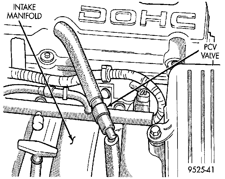 6. Check hose connections between the PCV valve, vacuum port-intake manifold and the oil separator Fig. 5.