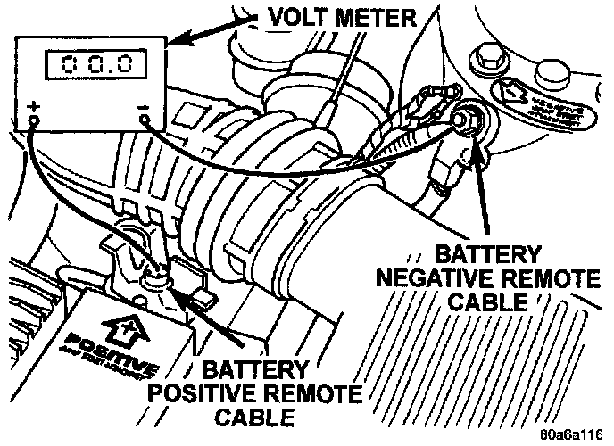 a. Touch the positive lead of voltmeter directly to negative battery remote cable POST.