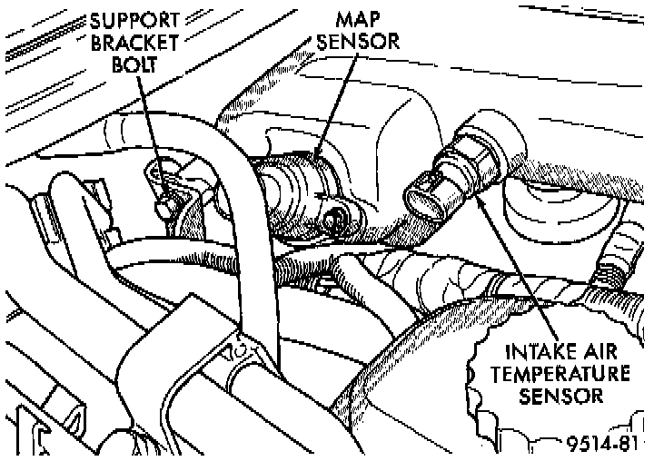 5. Remove plenum support bracket bolt located rearward of MAP sensor.